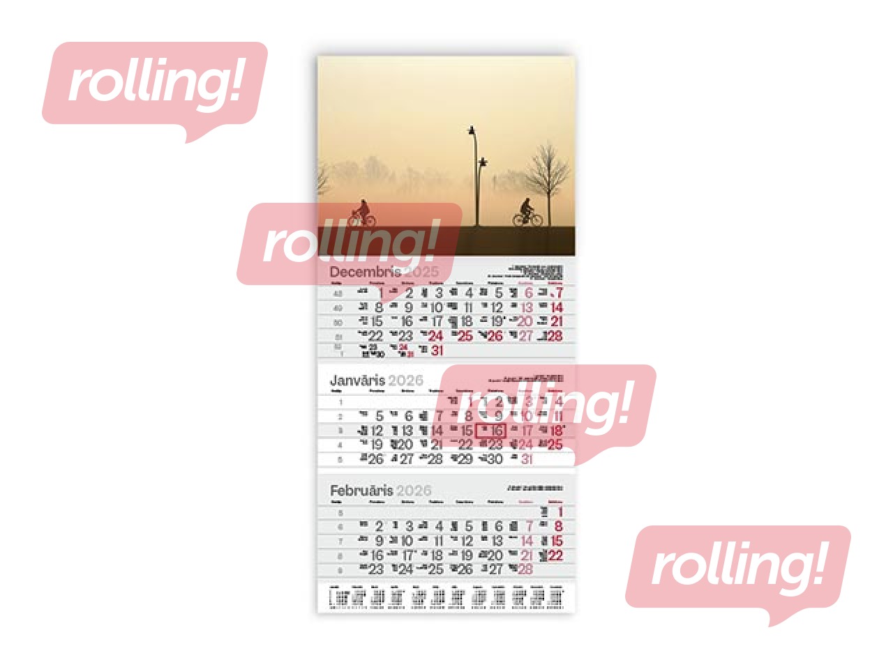 Kalendārs: trīs mēneši lapā (iepriekšējais, kārtējais un nākamais)
