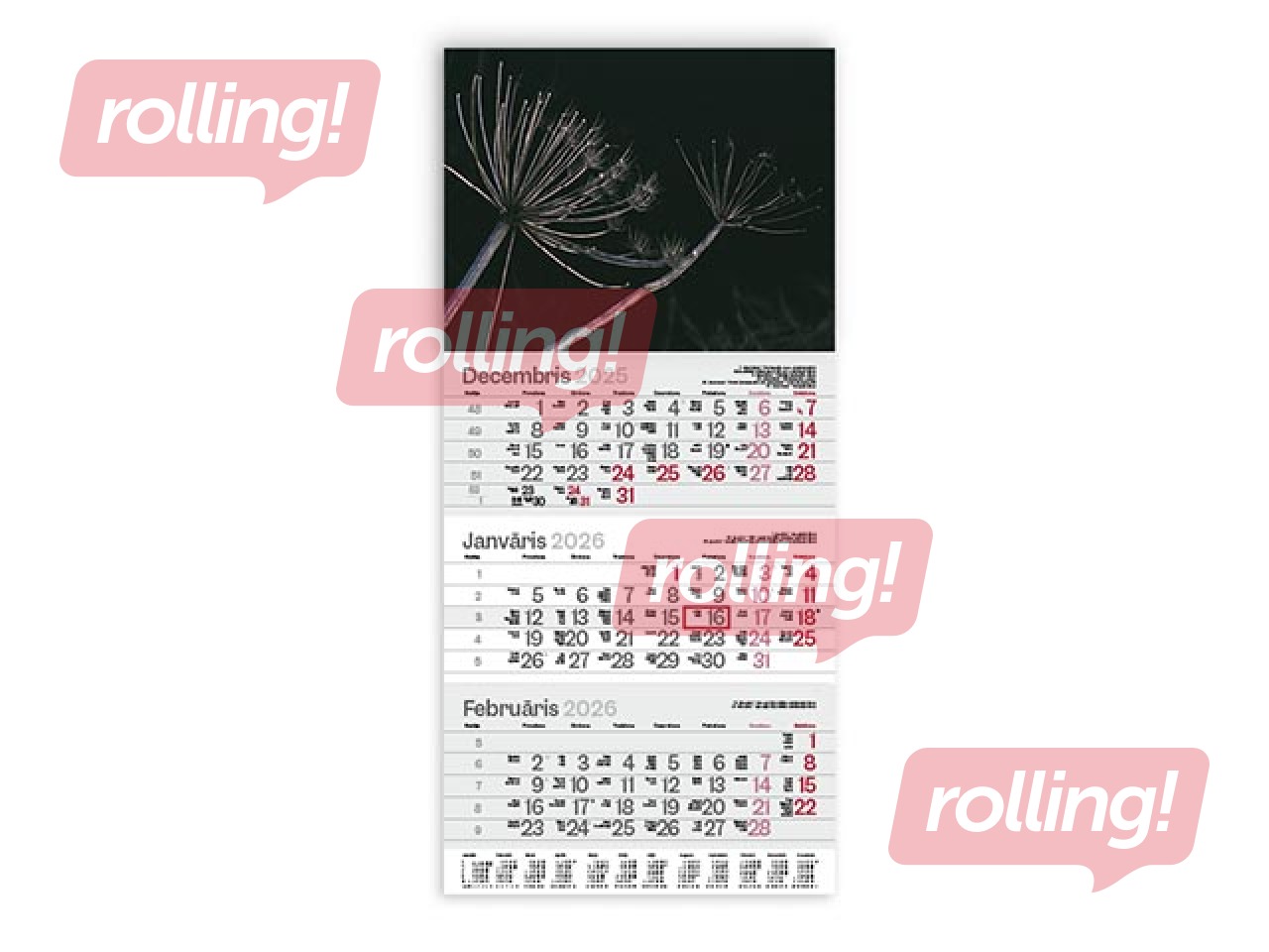 Kalendārs: trīs mēneši lapā (iepriekšējais, kārtējais un nākamais)