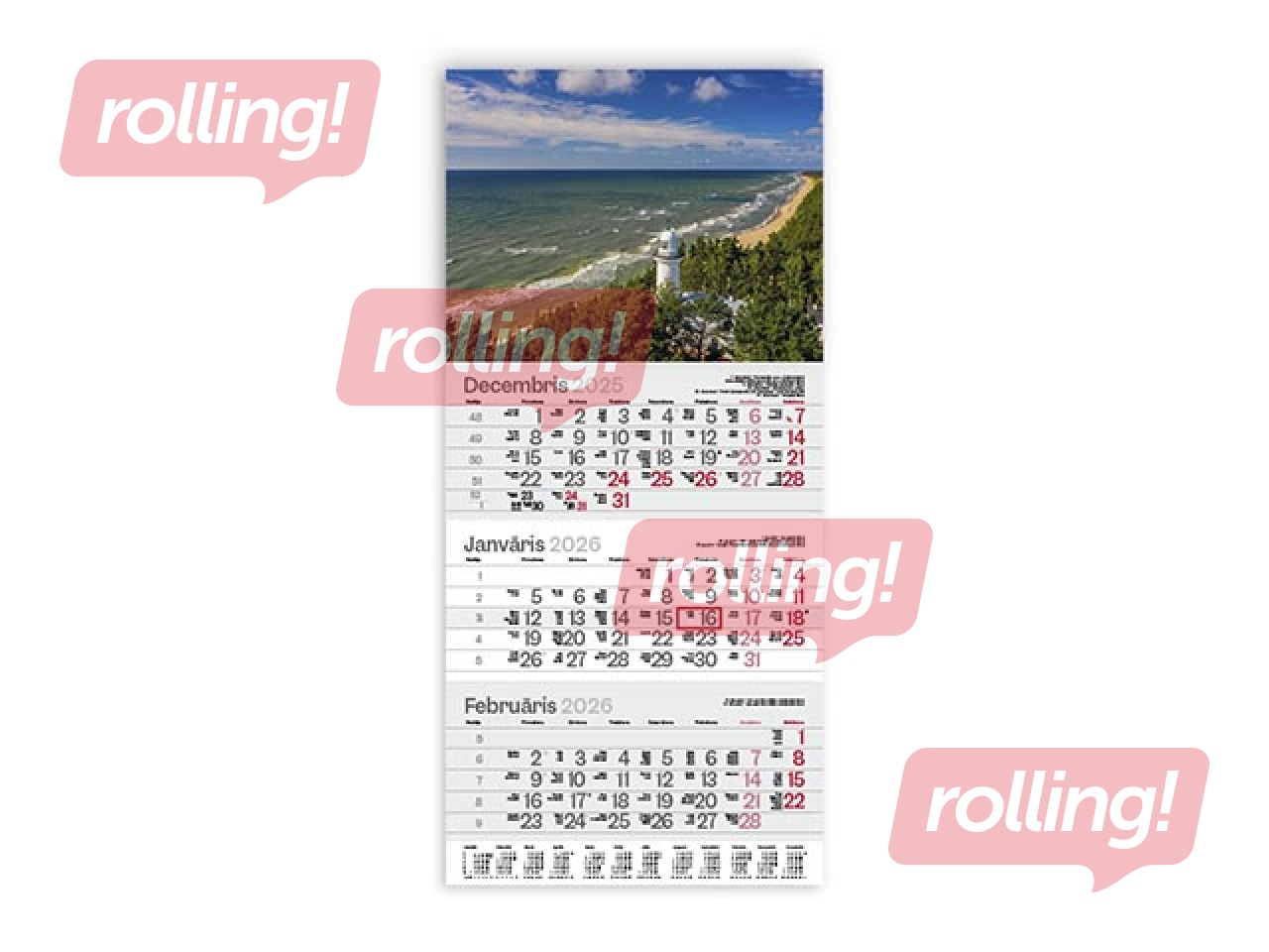 Kalendārs: trīs mēneši lapā (iepriekšējais, kārtējais un nākamais)