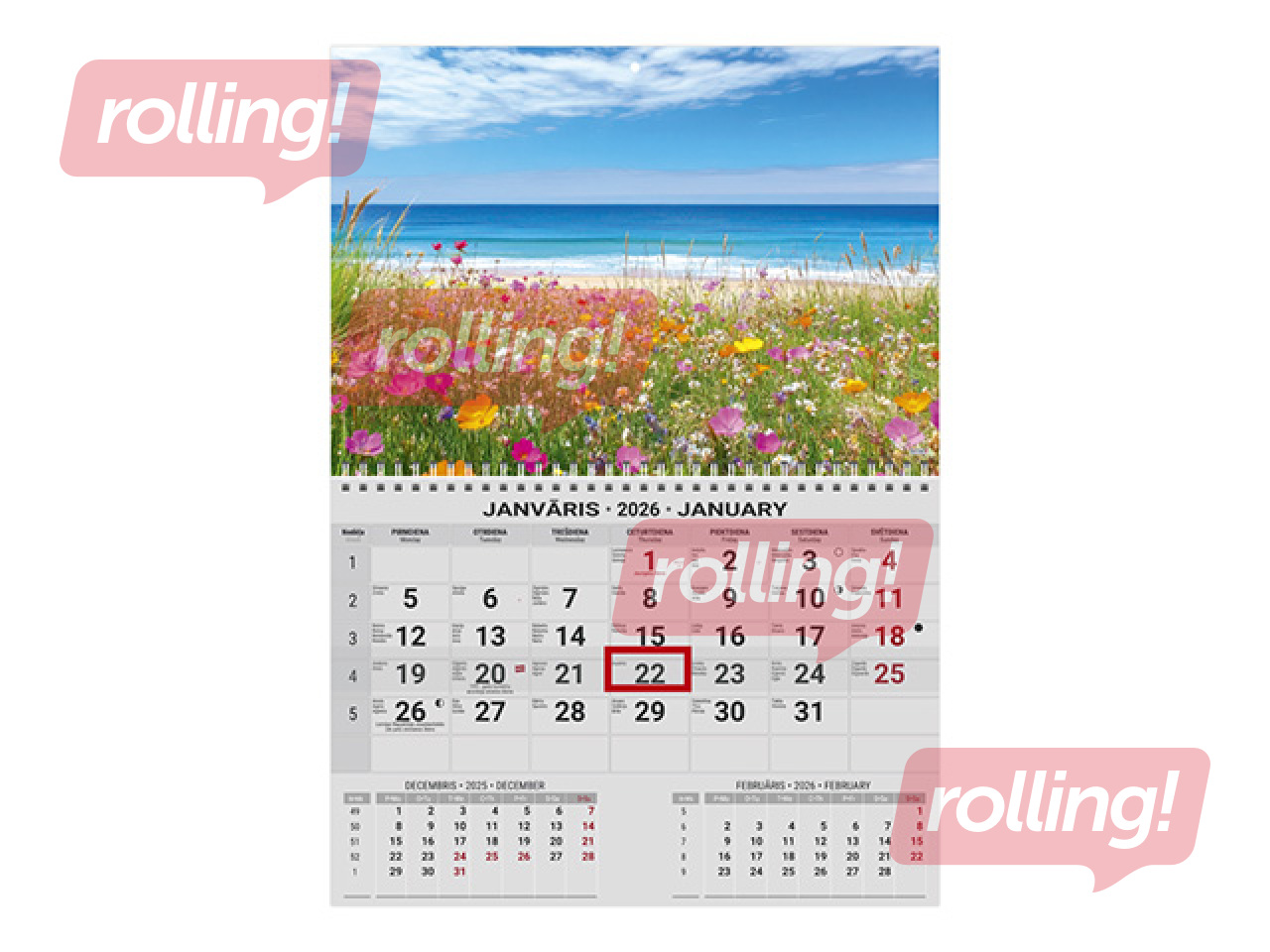 Personalizācijas iespējas: OFFICE sienas kalendāri ar uzņēmuma logo, reklāmas attēlu un reklāmas joslu.
