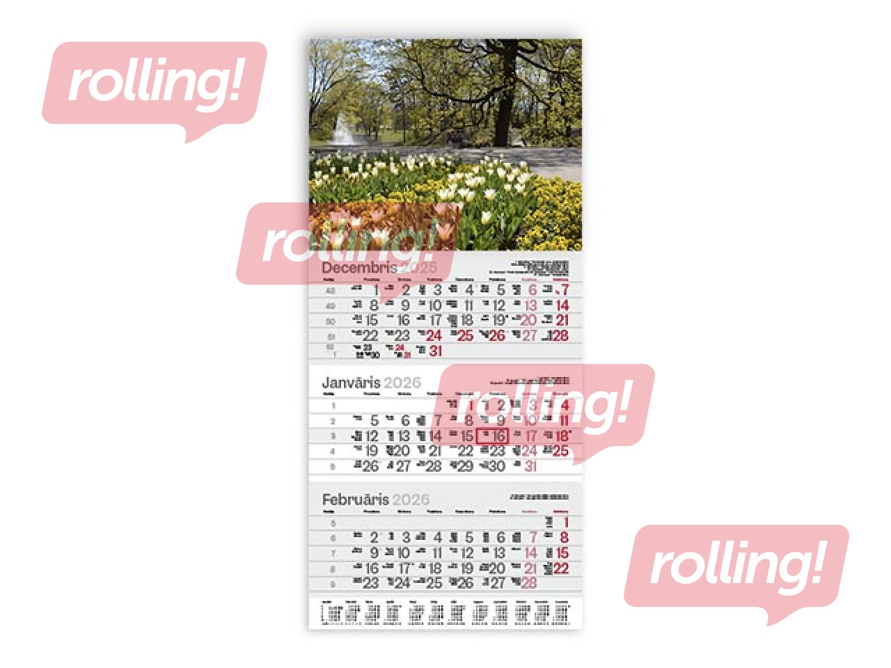 Kalendārs: trīs mēneši lapā (iepriekšējais, kārtējais un nākamais)