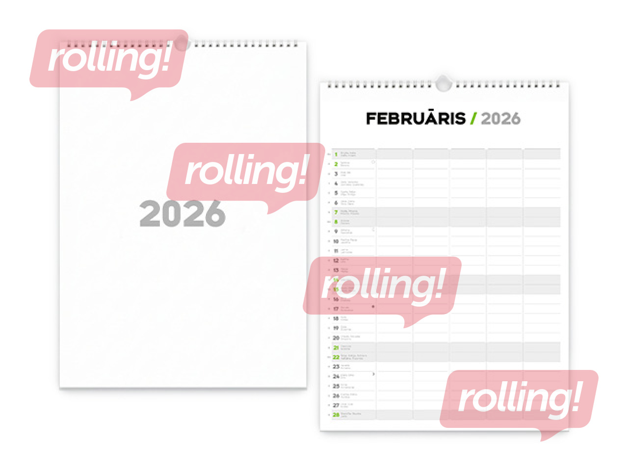 Kalendāram ir balta spirāle ar āķīti