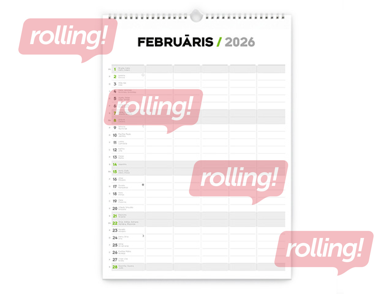 Kalendārs viens, bet plāni – katram savi? Tā nav problēma: ņemam vertikālo kalendāru un rakstām katra ģimenes locekļa plānus savā kolonnā. Viss skaidri, pārskatāmi un nekas netiks palaists garām. Protams, arī šajā kalendārā nav nekā lieka, lai varat aizpildīt to ar savām krāsainajām idejām un plāniem. Un varbūt bērni jau var aizpildīt savu kolonnu paši?