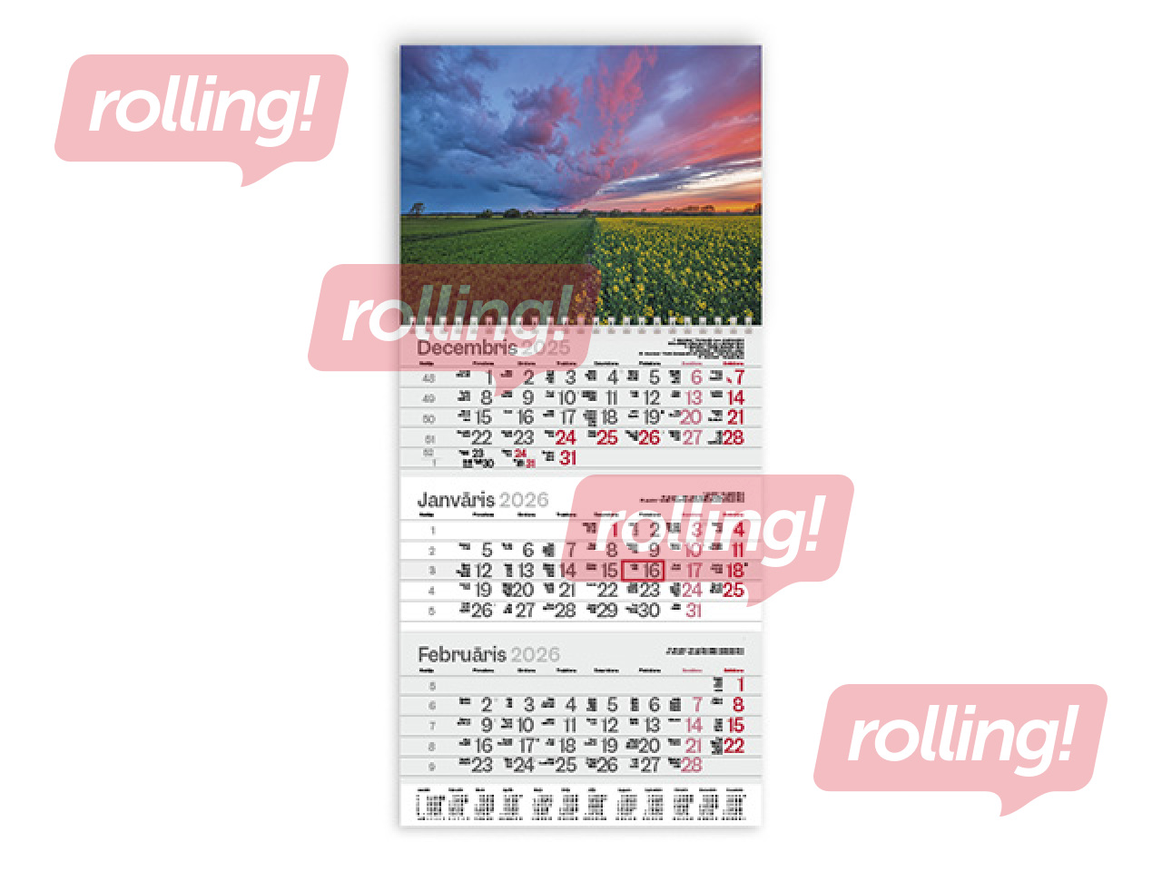 Kalendārs: trīs mēneši lapā (iepriekšējais, kārtējais un nākamais)