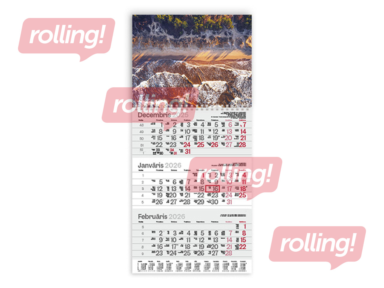 Kalendārs: trīs mēneši lapā (iepriekšējais, kārtējais un nākamais)