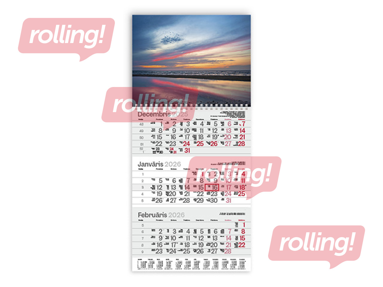 Kalendārs: trīs mēneši lapā (iepriekšējais, kārtējais un nākamais)