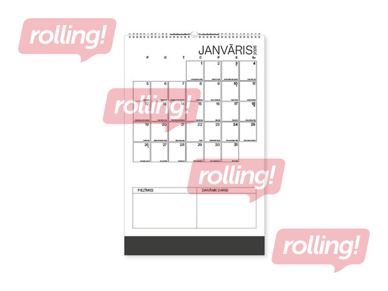 Grid, 12 mēnešu, sienas kalendārs.