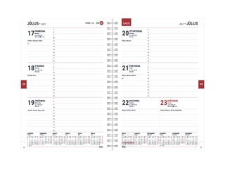Papildinformācija: Mākslīgās ādas vāki ar nošūtu malu, ar datumiem, ar spirāli, Latvijas karte, perforēti noplēšami lapu stūrīši, 14 mēneši