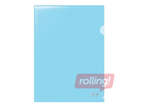 Mape - stūrītis glancēta. A4 formāts. Paredzēta dokumentu glabāšanai. Vaļēja augšeja un sānu mala. Izgatavots no polipropilena. Blīvums 180 mic, daļēji caurspīdīga.