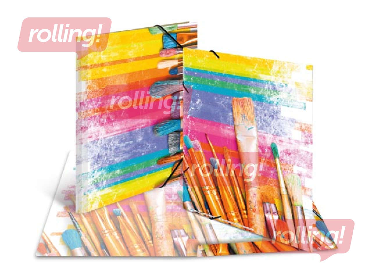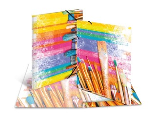 Elastīga un dizainiska A3 kartona mape ar gumijām. Izgatavota no izturīga kartona, ar elastīgām stūra gumijām un trim iekšējiem atlokiem.