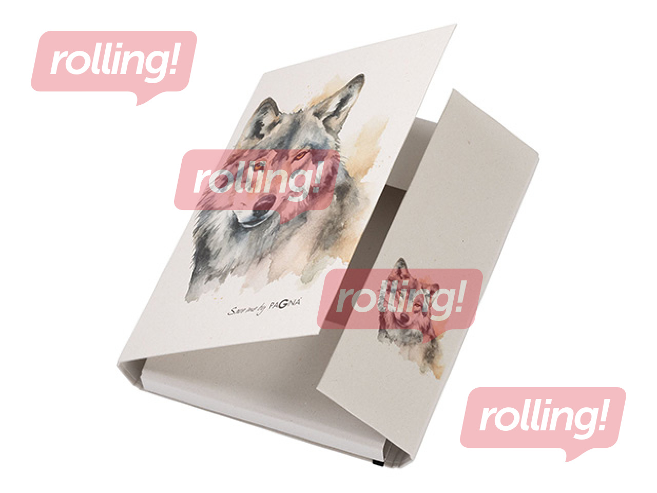 Mape izgatavota no izturīga pelēka kartona (RC) un pārklāta ar pārstrādātu papīru, kas apdrukāta ar dzīvnieku motīvu. Ar praktisku elastīgu aizdari