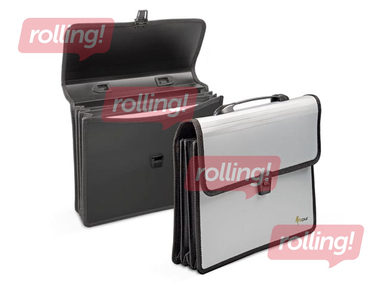 Portfelis ar 3 nodalījumiem. Ar rokturi un slēdzi. A4 formāts. Izgatavots no polipropilena.