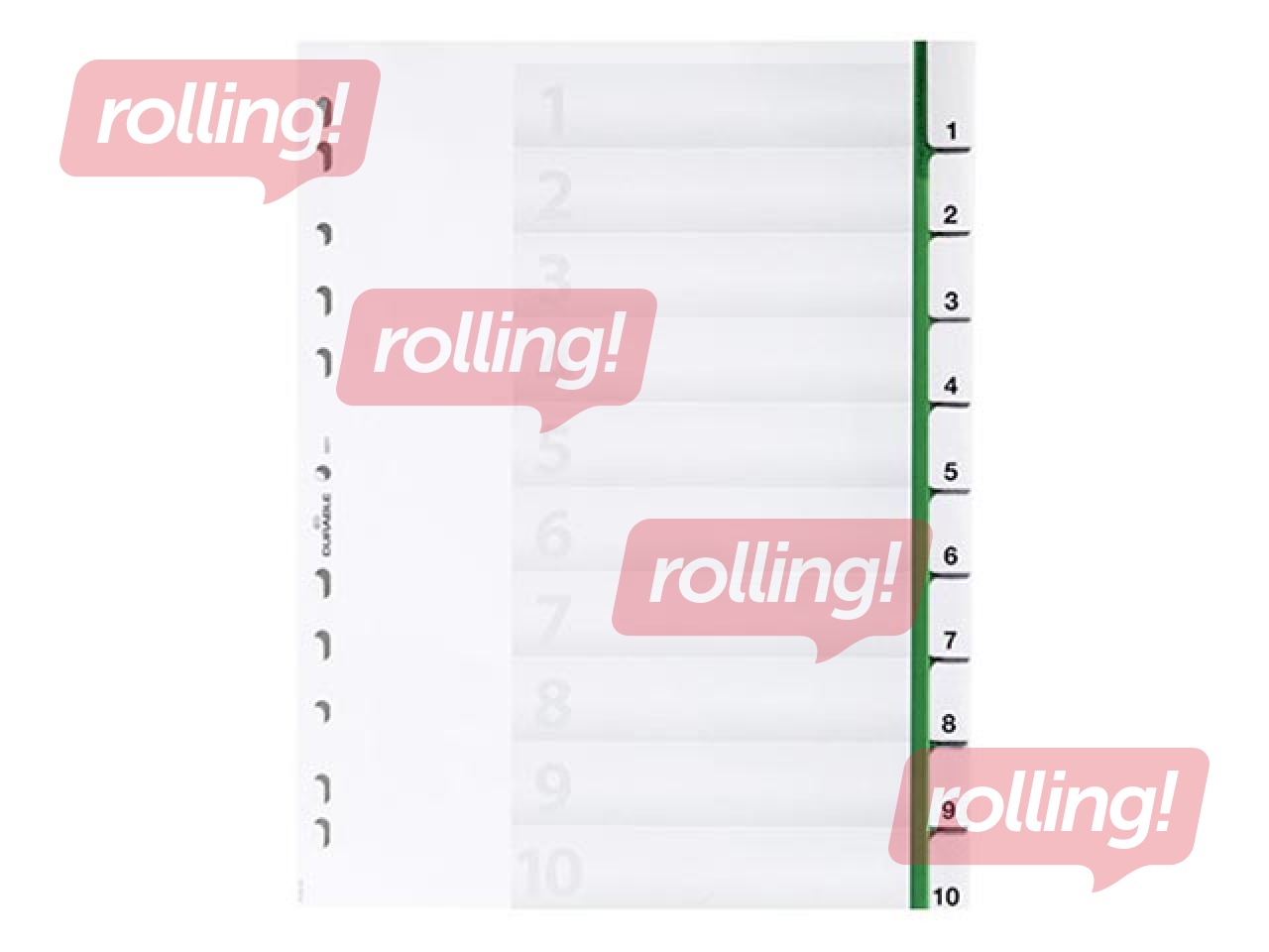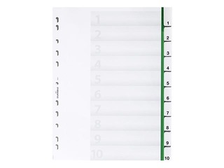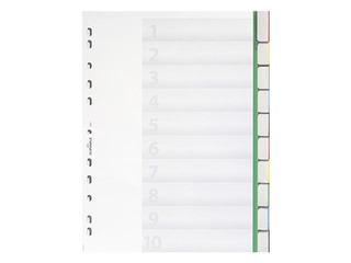 Dokumentu atdalītājs no polipropilēna (PP). Formāts A4. Iedaļu skaits 1-10. Sadalītāju indeksus var viegli mainīt.
