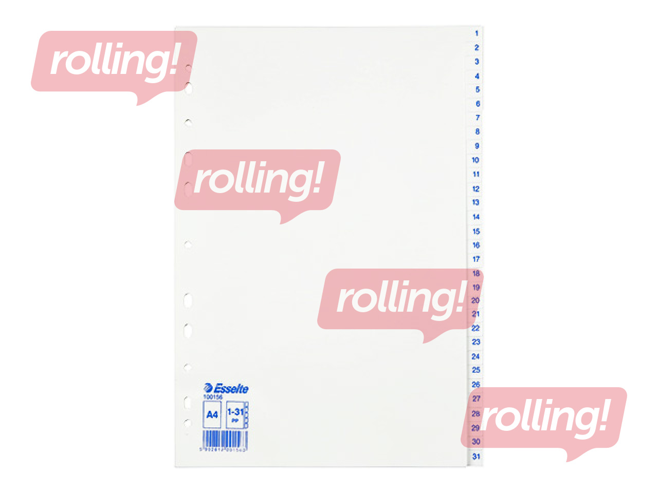 Reģistrs 1–31 A4 dokumentu skaidrai organizēšanai, ideāli piemērots lietošanai mapēs vai riņķa mapēs.