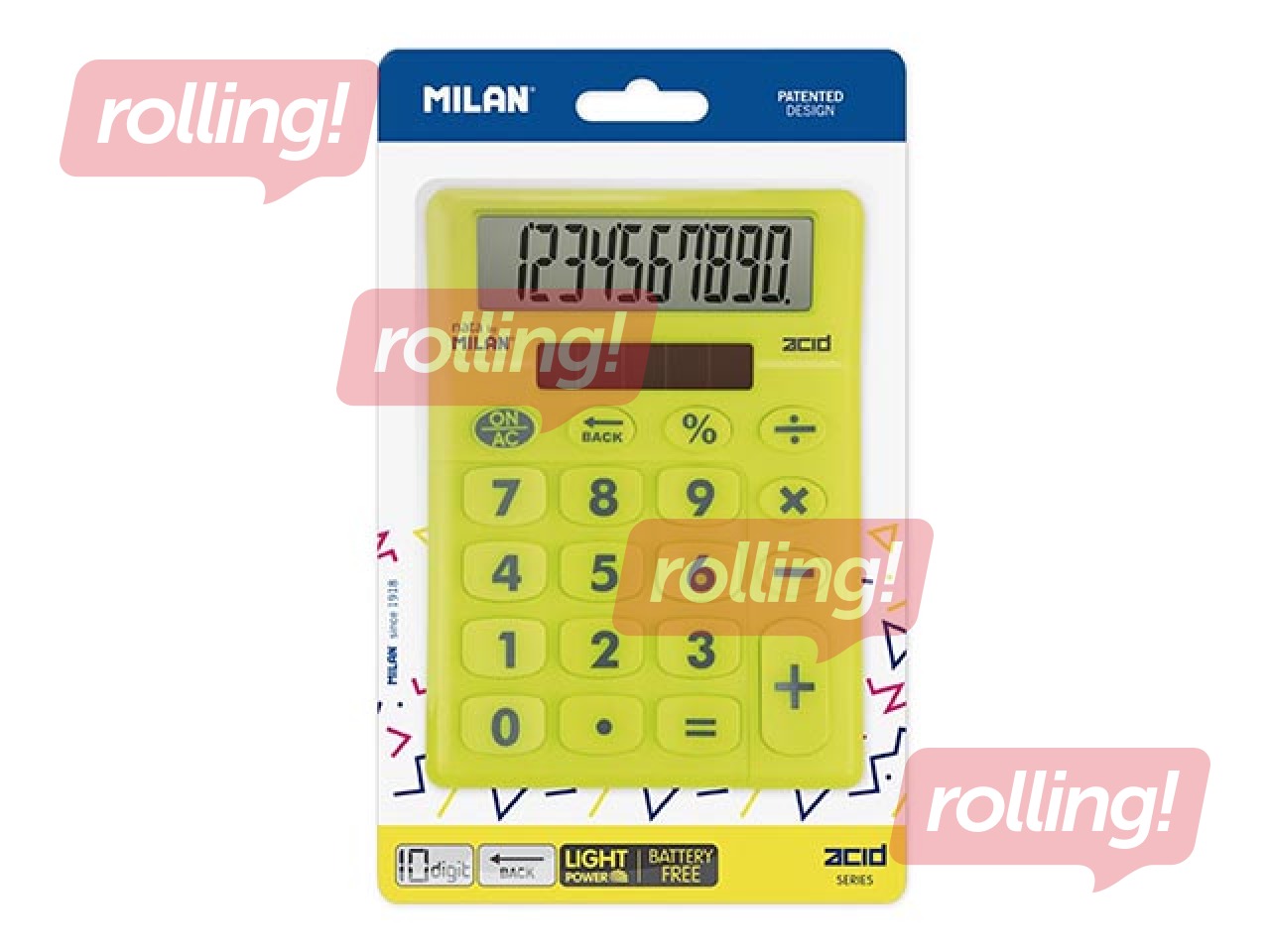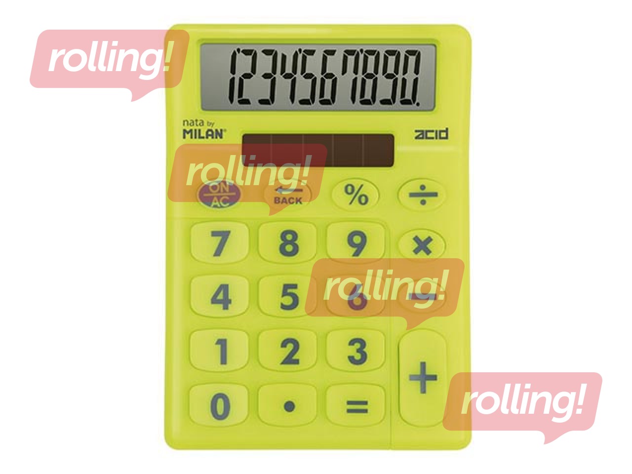 "Galda sērijas" kalkulators ar lieliem plastmasas taustiņiem un cipariem. Ekrāna zīmju skaits: 10.