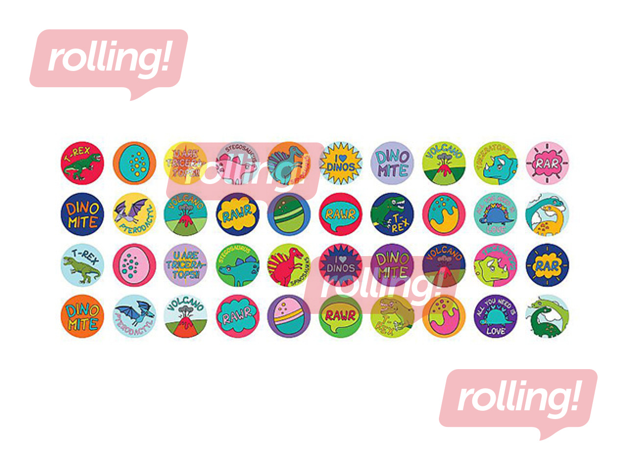 Dekoratīvā zīmoga - uzlīmju komplekts piedāvā plašu krāsainu uzlīmju klāstu ar dinozauru pasaules motīviem. Komplektā kopumā ir 320 uzlīmes: 160 uzlīmes zīmogā un vēl 160 uzlīmes kā papildinājums kastītē.