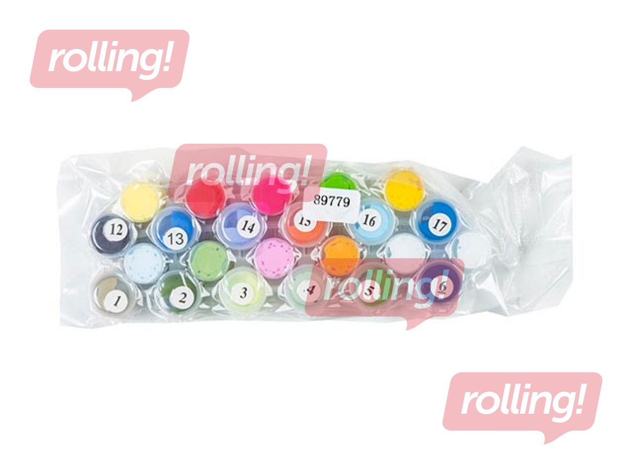 Akrila krāsu komplekts cieši noslēgtos traukos;