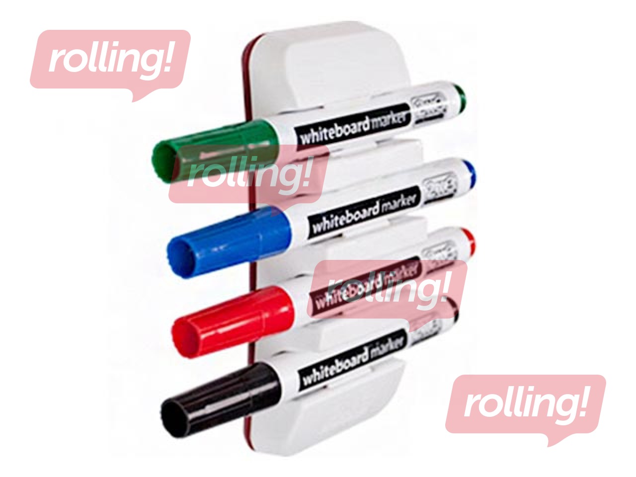 Magnētisks marķieru turētājs horizontālai izvietošanai, lai marķieri tāfelēm būtu vienmēr blakus tāfelei - pie rokas. Turētājs paredzēts 4 marķieriem (marķieri neietilpst komplektā).