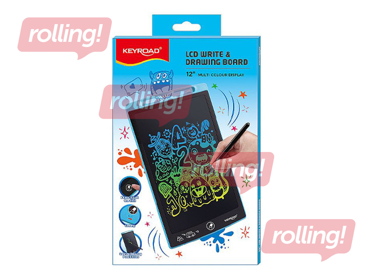 Planšetei ir praktiska viena klikšķa dzēšanas funkcija. Bloķējamais ekrāns arī aizsargā svarīgas piezīmes vai mākslas darbus no nejaušas izdzēšanas. Planšete piedāvā bezgalīgas iespējas daudzkrāsu zīmēšanai. Pieejams vairākās krāsu opcijās. Augšpusē ir integrēts irbuļa turētājs.