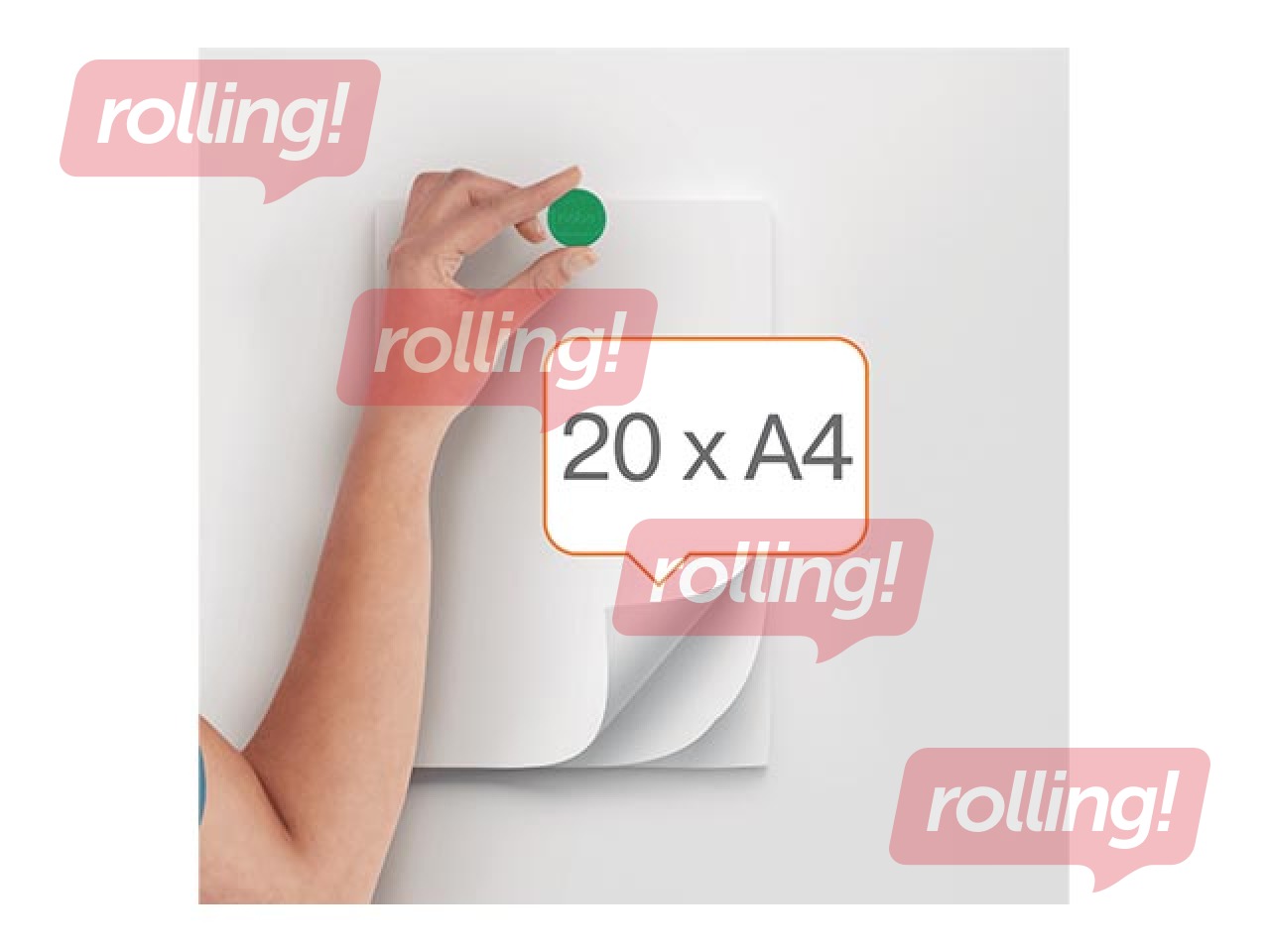 Šie krāsainie magnēti droši notur 20 x 80 gsm A4 papīra loksnes un ir 38 mm diametrā.
