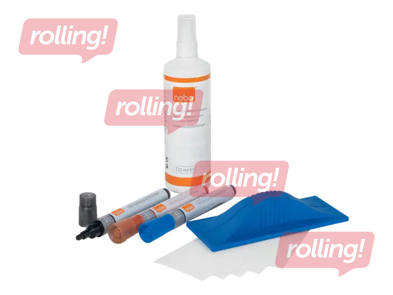 Komplektā iekļauti 3 marķieri, dzēšgumija un Nobo tīrīšanas sprejs.