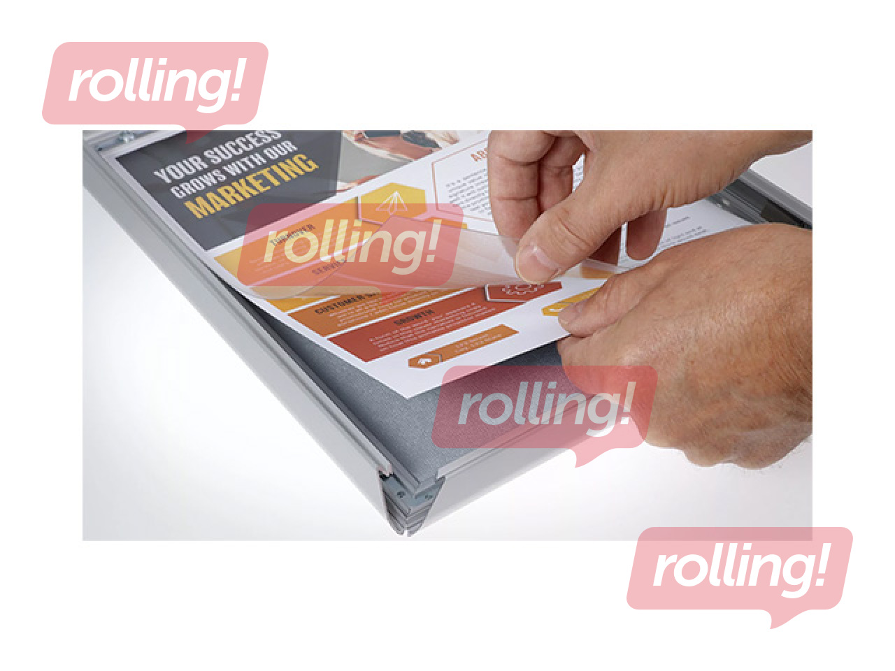 Pretatspīduma caurspīdīga aizsarglapa (PET) pasargā plakātu no netīrumiem un mitruma.