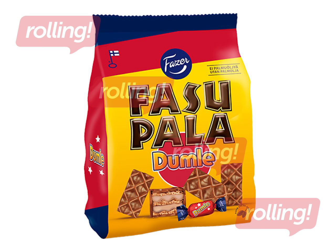 Fasupala ir Somijas iecienītākā vafele. Fasupala Dumle apvieno mutē kūstošu Fazer šokolādes pārklājumu ar gardo Dumle karameles garšu — kombinācija, kas liek siekalām tecēt!