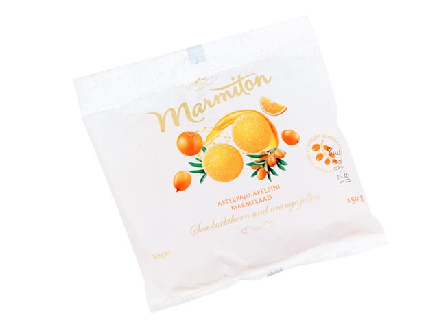 Produktam izmantota dabīga smiltsērkšķu sula no Igaunijas un pievienota dabīga apelsīnu pasta garšas papildināšanai. Smiltsērkšķu ogām ir unikāls sastāvs un tās ir ideāls dabisko vitamīnu avots. Smiltsērkšķu ogas satur karotinoīdus, kas piešķir tām krāsu un piemīt antioksidanta iedarbība. Pateicoties karotinoīdiem, marmelādei, kas satur smiltsērkšķu sulu, ir skaista oranža krāsa. Produkts nesatur aromatizētājus vai krāsvielas. Marmelādes virsma ir mazāk klāta ar cukuru, jo produkta virsma ir stiprāka citrusaugļu pektīna izmantošanas dēļ. Marmelādes konsistence ir spēcīga un ar patīkamu struktūru.