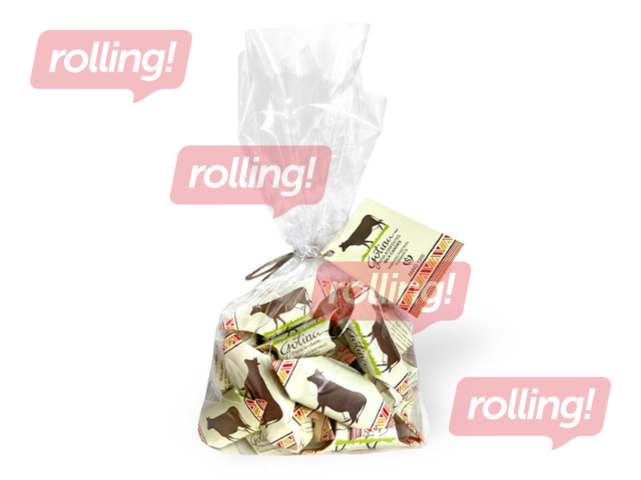 Konfektes “Gotiņa” caurspīdīgā maisiņā.