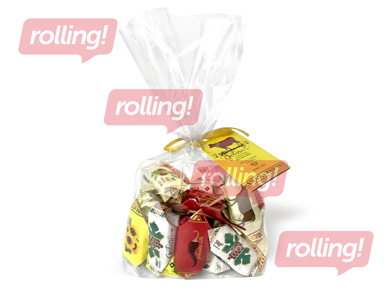 Konfektes “Gotiņa” caurspīdīgā maisiņā.