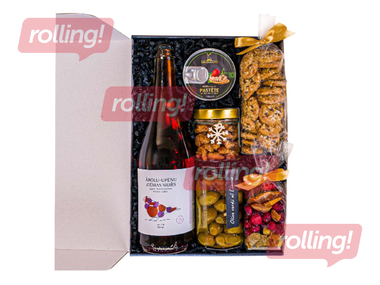 Dāvana ar īstu ziemas raksturu – dzirkstošs ābolu–upeņu ziemas sidrs, izsmalcināta brieža gaļas pastēte, olīvas ar trifelēm un kraukšķīgi gardumi. “Ziemelis” ir elegants un bagātīgs komplekts, kas sasildīs svētkos un radīs svinīgu garšu piedzīvojumu.