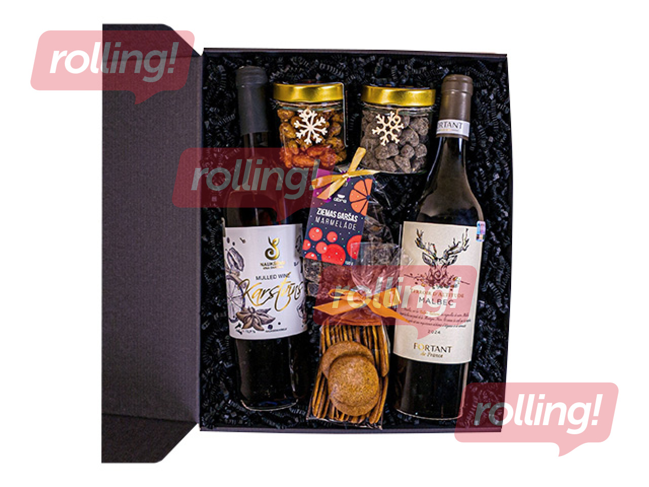 Izsmalcināta Ziemassvētku dāvana, kas apvieno bagātīgu garšu pasauli – no kraukšķīgām piparkūkām un šokolādē glazētiem riekstiem līdz gardai marmelādei, aromātiskam karstvīnam un franču sarkanvīnam. Tā ir dāvana, kas piešķir svētkiem gan siltu mājīgumu, gan svinīgu greznību.