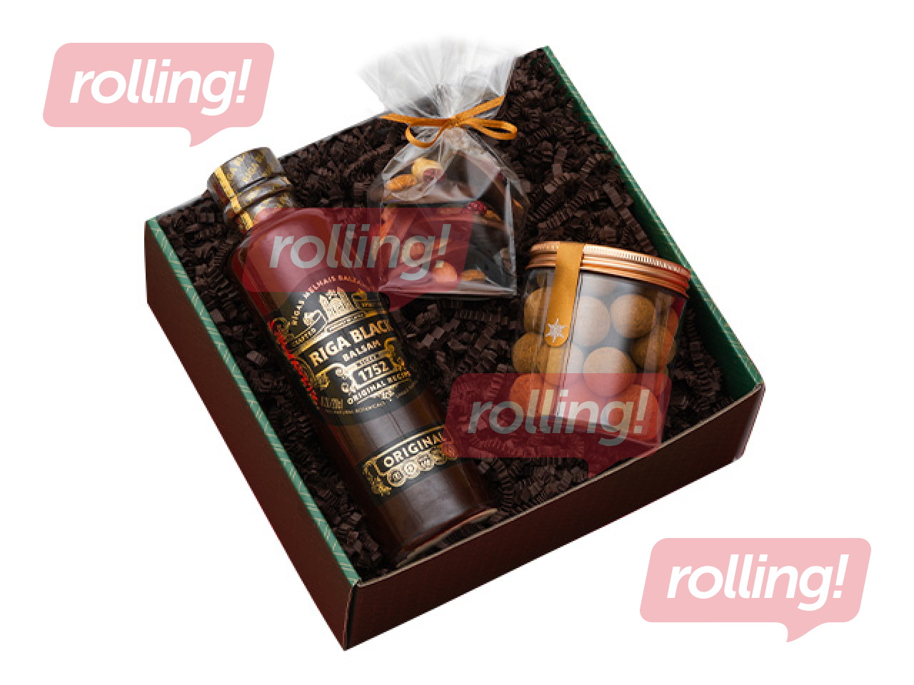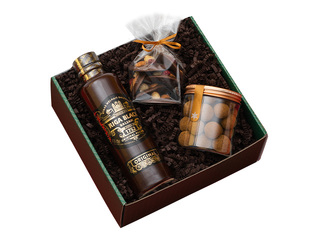 Izsmalcināts Ziemassvētku dāvanu komplekts, kas apvieno klasiskas Latvijas garšas un saldu svētku baudījumu. Komplektā iekļauts leģendārais Rīgas Melnais Balzams (45%), kā arī gardumi ar šokolādi un riekstiem, kas lieliski papildina svētku noskaņu.
