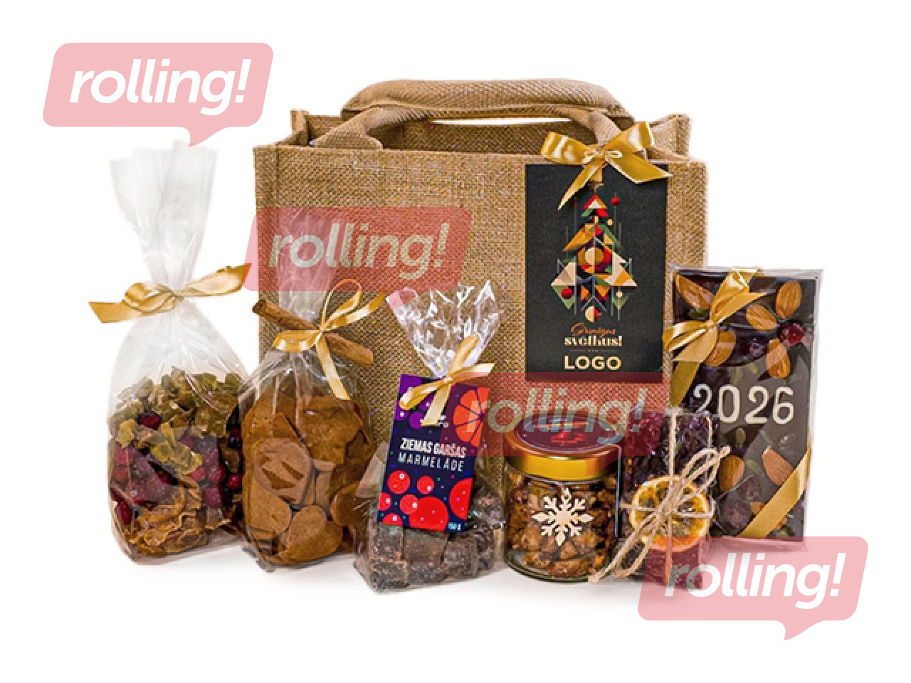 Svinīga dāvana, kurā apvienoti svētku saldumi un tradīcijas – tumšā šokolāde, piparkūkas ar kļavu sīrupu, svētku kēkss ar rumu, marmelāde, sukādes un karamelizētas mandeles. Dāvana, kas piepilda svētkus ar bagātīgām garšām un saldu prieku.