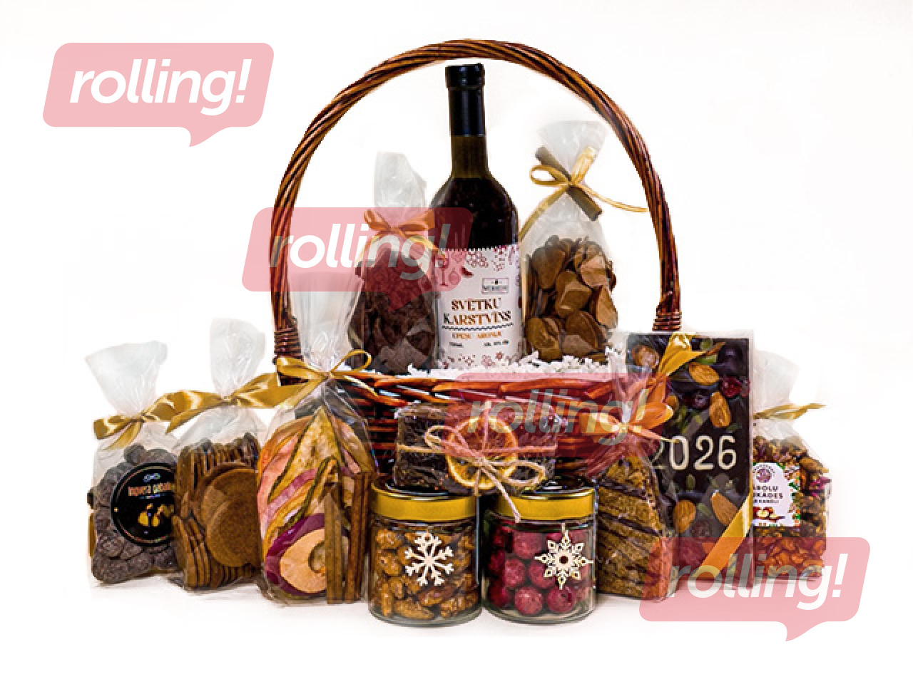 Dāvana, kas apvieno pašas svētku tradīcijas – karstvīns un piparkūkas, šokolādes un rieksti, svētku kēkss un augļu našķi. Grozs, kas piepildīts ar Ziemassvētku garšu un smaržu.