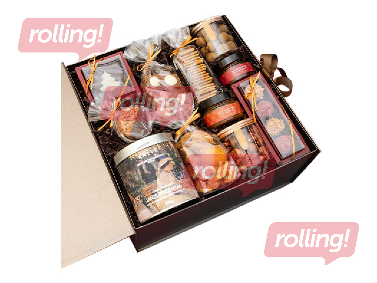 Greznība, siltums un garšu pilnība – dāvanu komplekts, kas simbolizē skaistu gada noslēgumu. Izsmalcinātā Kalve Toffee – Jānis Rozentāls espresso kafija kopā ar trifeļu izlasi, gardiem cepumiem, šokolādes un karameļu kārumiem rada īpašu svētku noskaņu. Šī dāvana ir kā pateicība, svinības un labsajūta vienā – lieliska izvēle kolēģiem, sadarbības partneriem vai tuviniekiem.