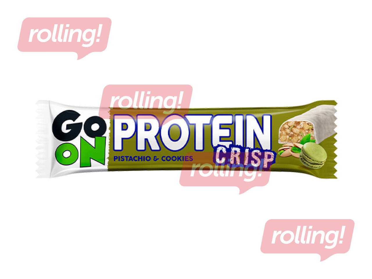 GO ON Protein Crisp batoniņš galvenokārt izceļas ar: