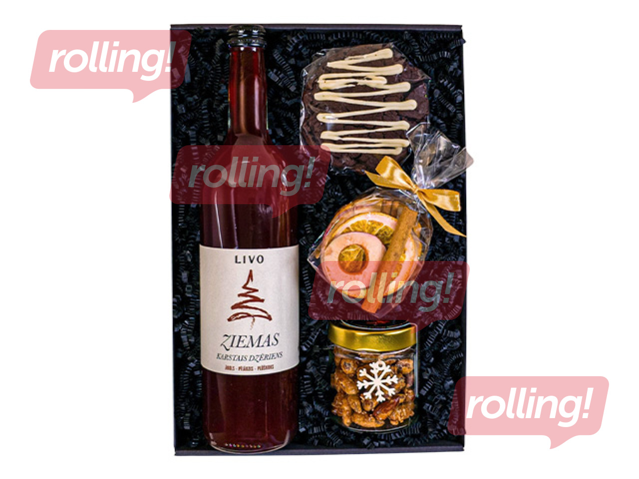 Bagātīga gardumu dāvana mierīgam ziemas vakaram. Sildošs karstais dzēriens ar plūškoku, āboliem un pīlādžiem, izsmalcināts šokolādes braunija cepums un saldi kārumi rada īpašu noskaņu un piešķir vakaram burvību.