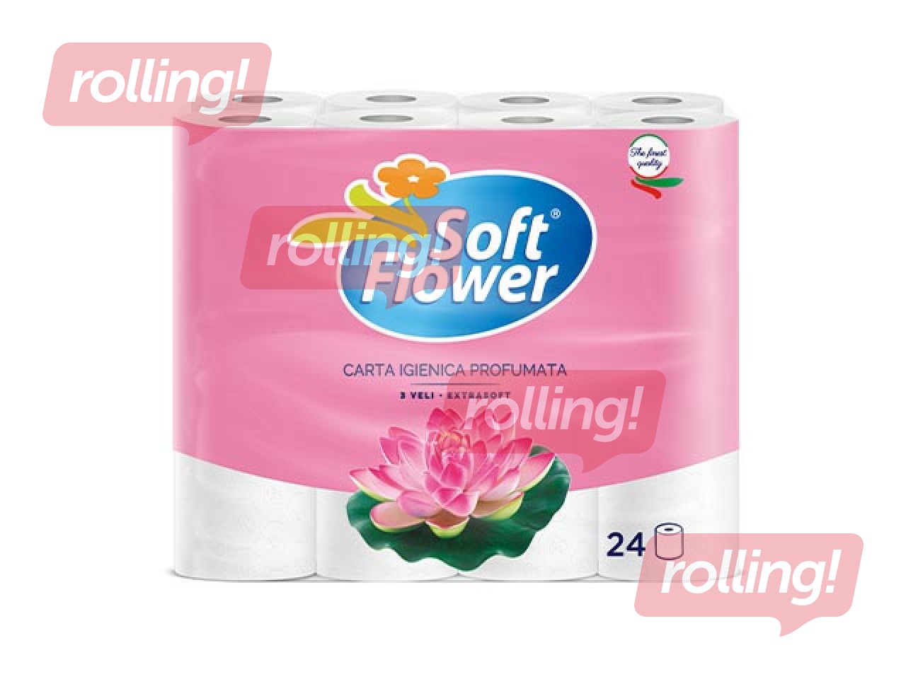 Tualetes papīrs Soft Flower, 3 slāņi, balts, 24 ruļļi
