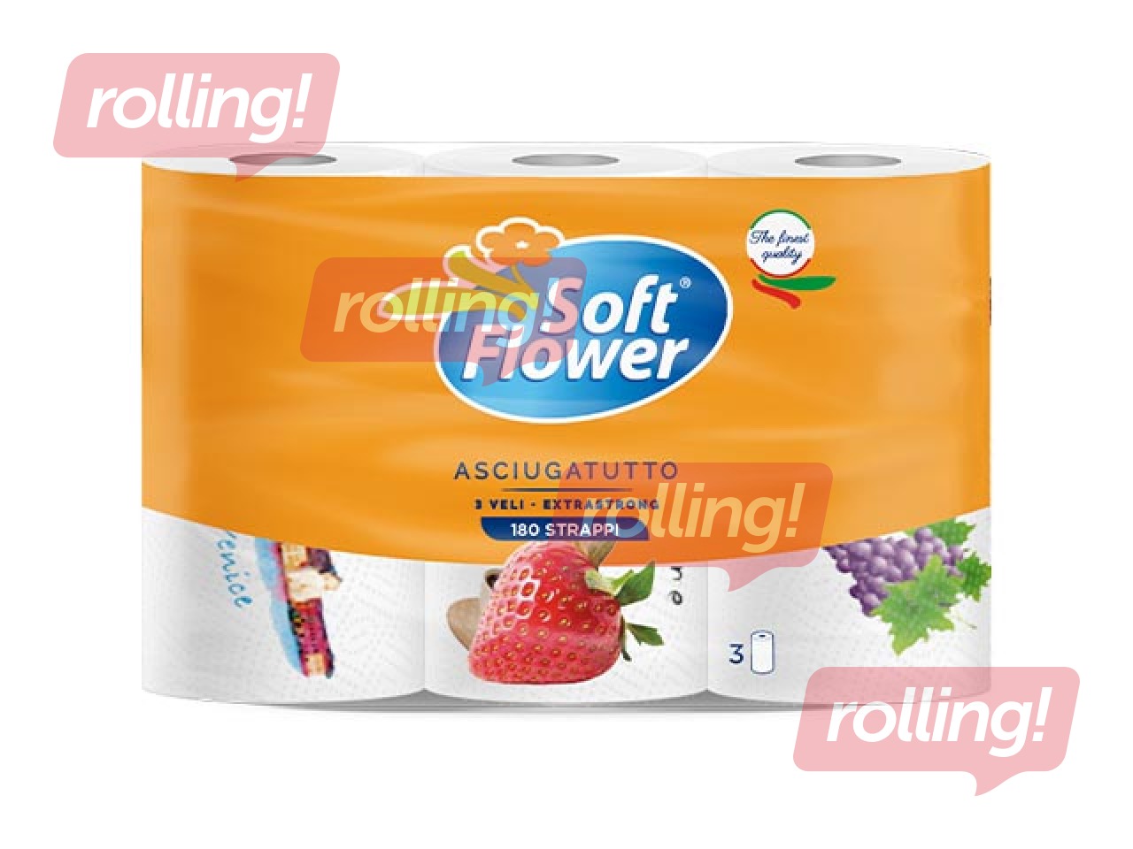 Papīra dvieļi Soft Flower, 3 ruļļi, 3 slāņu, 150 loksnes