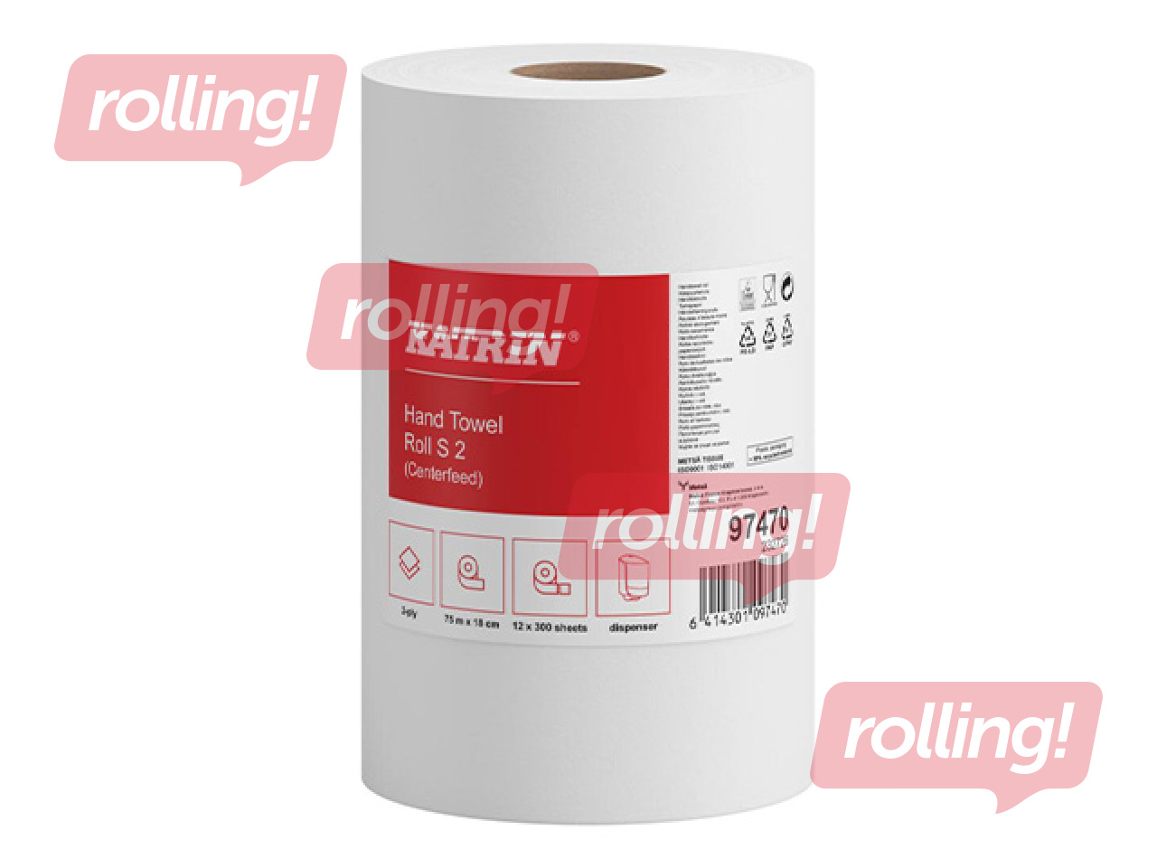 Papīra dvieļi Katrin Centrefeed S2, 12 ruļļi, 2 slāņi, balti
