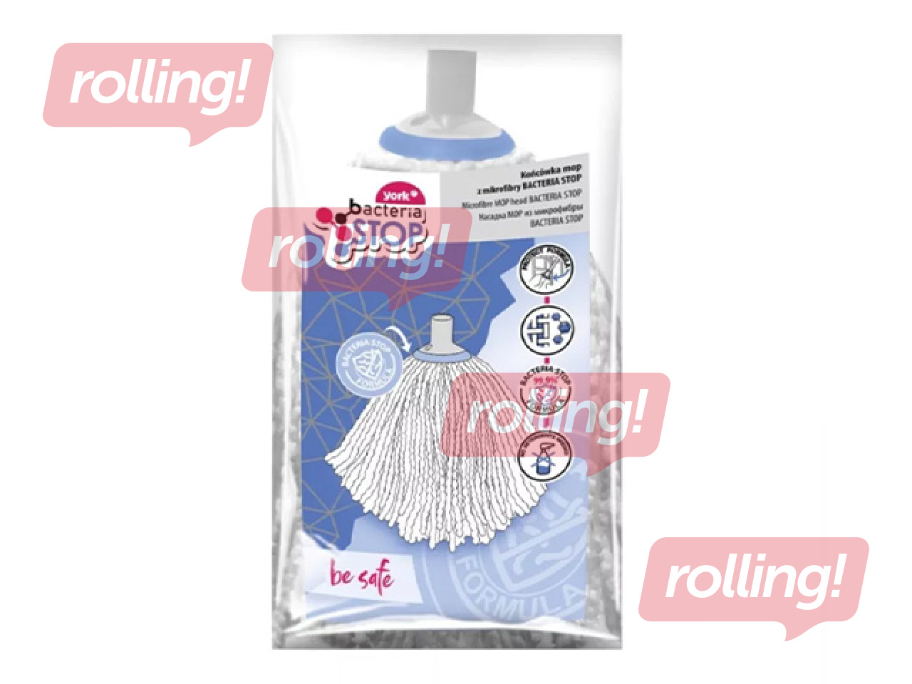 YORK BACTERIA STOP mopa uzgalis efektīvi attīra visas grīdas virsmas. Bagātināts ar sudraba joniem, kas kavē baktēriju vairošanos uz produkta virsmas. Ļoti labi satver netīrumus un absorbē šķidrumus. Nav nepieciešams izmantot spēcīgus tīrīšanas līdzekļus - piemērots alerģiskiem cilvēkiem. York Bacteria STOP produkti ne tikai palīdz uzturēt tīras telpas, bet arī aizsargā no neredzamajiem netīrumiem - baktērijām.