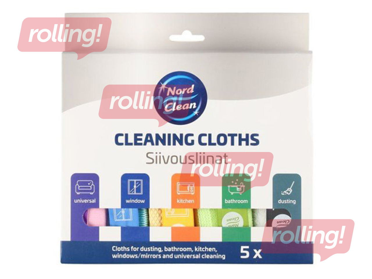 Lupatiņu komplekts Nord Clean paredzēts dažādu virsmu tīrīšanai mājsaimniecībā, nodrošinot efektīvu netīrumu un putekļu savākšanu; lupatiņas ir izgatavotas no 80% poliestera un 20% poliamīda mikrošķiedras materiāla. Vienas lupatiņas izmērs ir 30x30cm, komplektā ietilpst 5 gab., un katrai drānai paredzēts atšķirīgs pielietojums: putekļu slaucīšanai, vannas istabai, virtuvei un logiem vai spoguļiem, ko norāda skaidras ikonas ērtākai lietošanai.