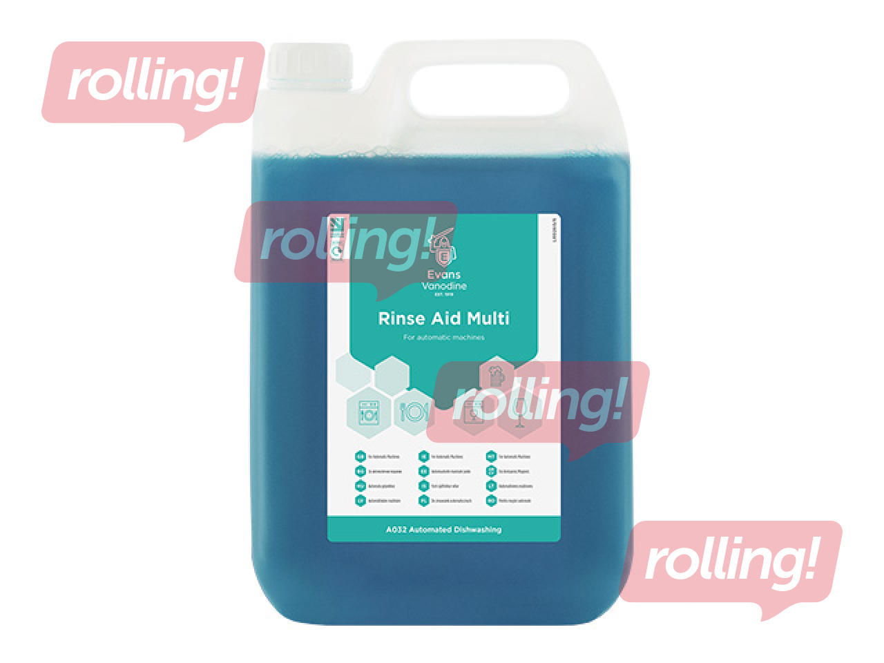 Trauku skalošanas līdzeklis Evans Vanodine Rinse Aid Multi, trauku mazgāšanas mašīnām, 5l