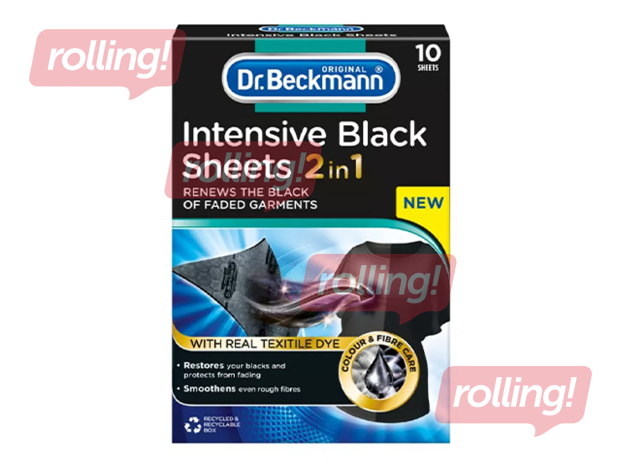 Dr.Beckmann krāsu atjaunojošās lupatiņas melniem audumiem ar inovatīvu kopšanas formulu mazgāšanas laikā efektīvi atjauno apģērba krāsas intensitāti. Kopjošie enzīmi izlīdzina raupjās šķiedras, uzlabojot auduma izskatu.
