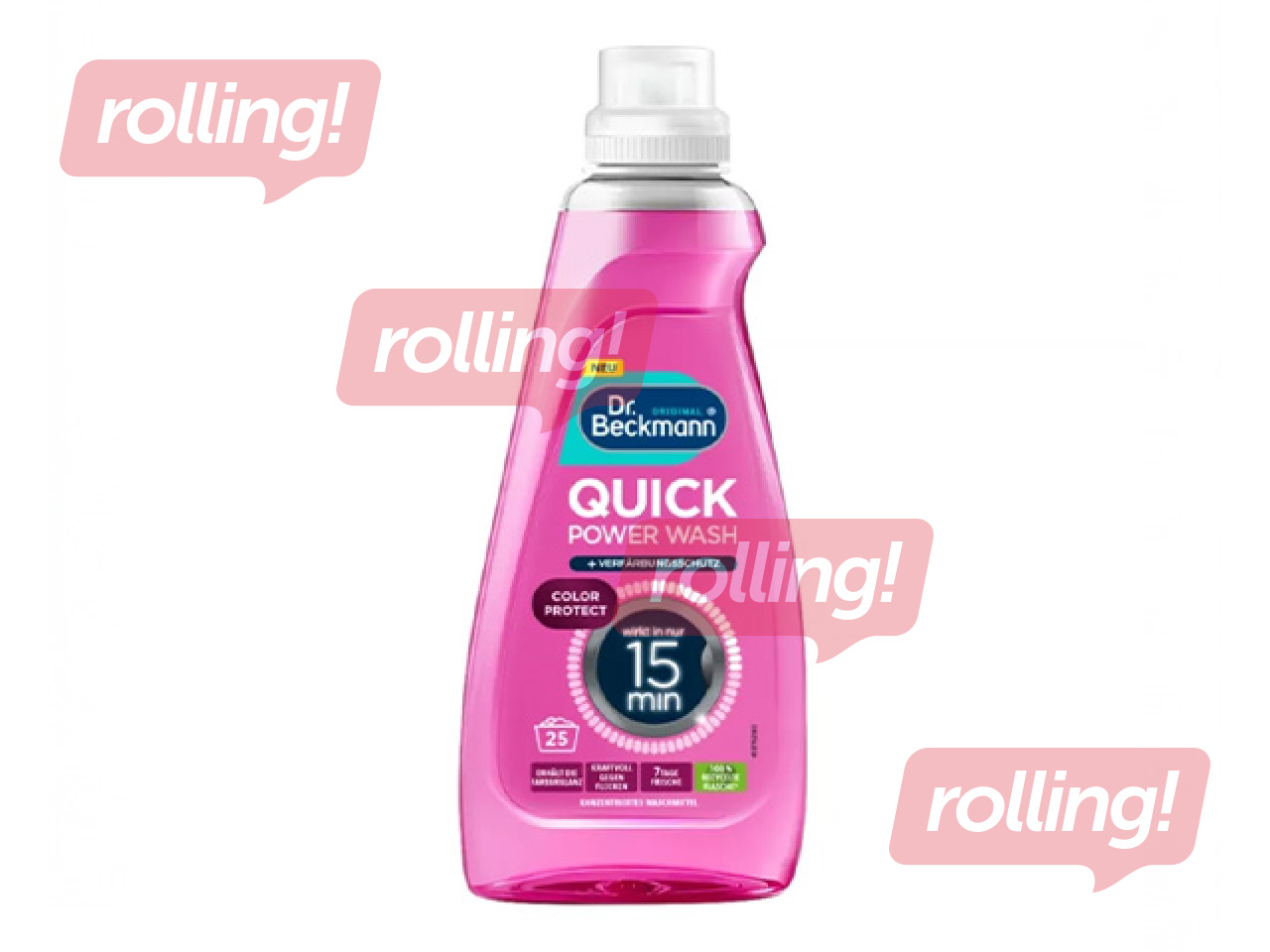 Veļas mazgāšanas līdzeklis Dr. Beckmann Quick Power Wash Color Protect paredzēts krāsainas veļas efektīvai tīrīšanai, nodrošinot dziļu attīrīšanu pat īsos mazgāšanas ciklos; pateicoties Quick Wash tehnoloģijai, tas iztīra traipus jau 15 minūtēs. Līdzeklis palīdz saglabāt krāsu intensitāti, novērš nepatīkamas smakas un nodrošina līdz 7 dienu svaigumu, īpaši piemērots arī sporta apģērbam.