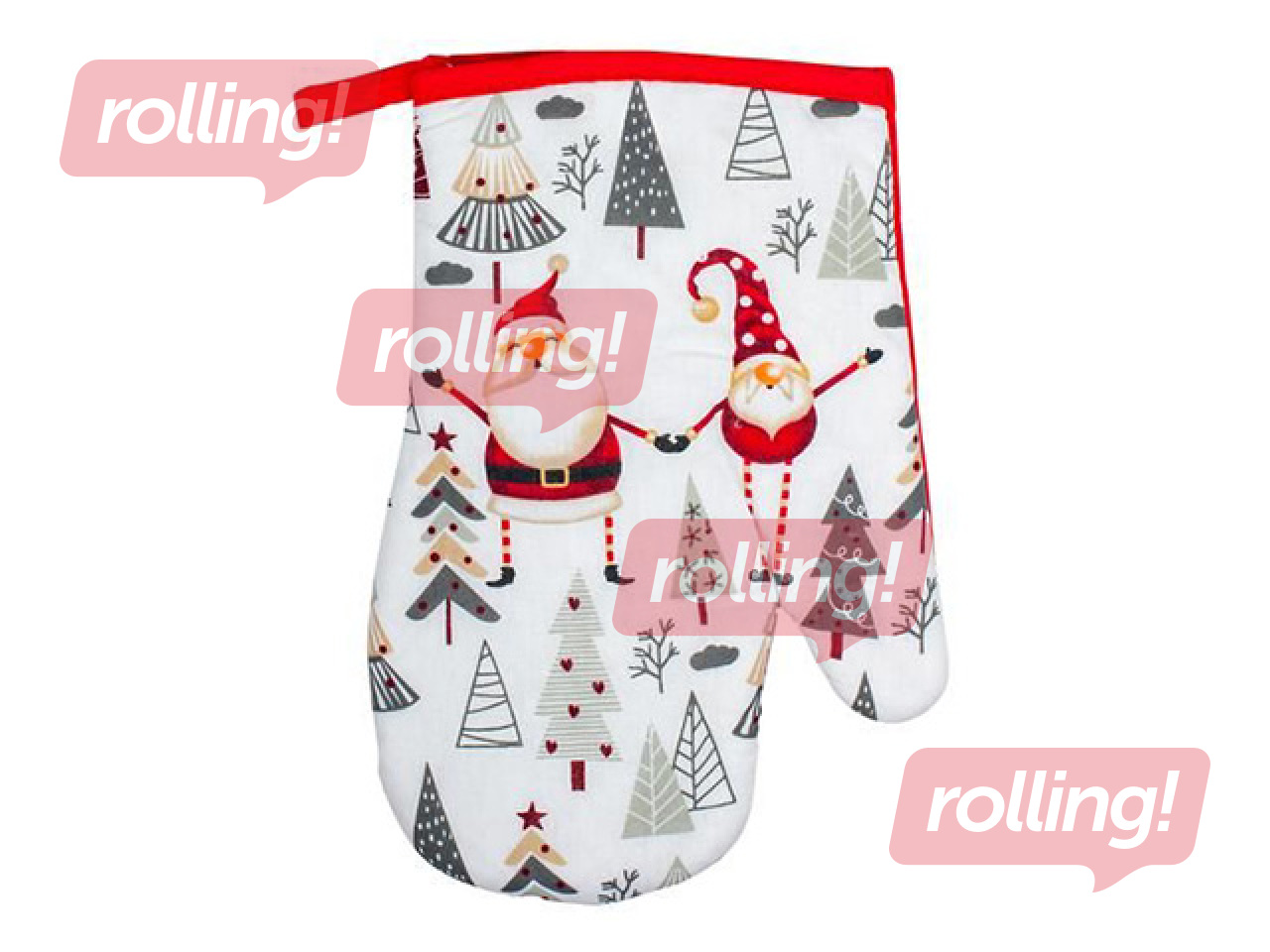 Sirsnīgs un praktisks virtuves cimds ar jautru rūķu motīvu Ziemassvētku noskaņās. Piemērots lietošanai ikdienā vai svētku laikā, nodrošinot drošu aizsardzību pret karstumu un piešķirot virtuvei svinīgu akcentu.
