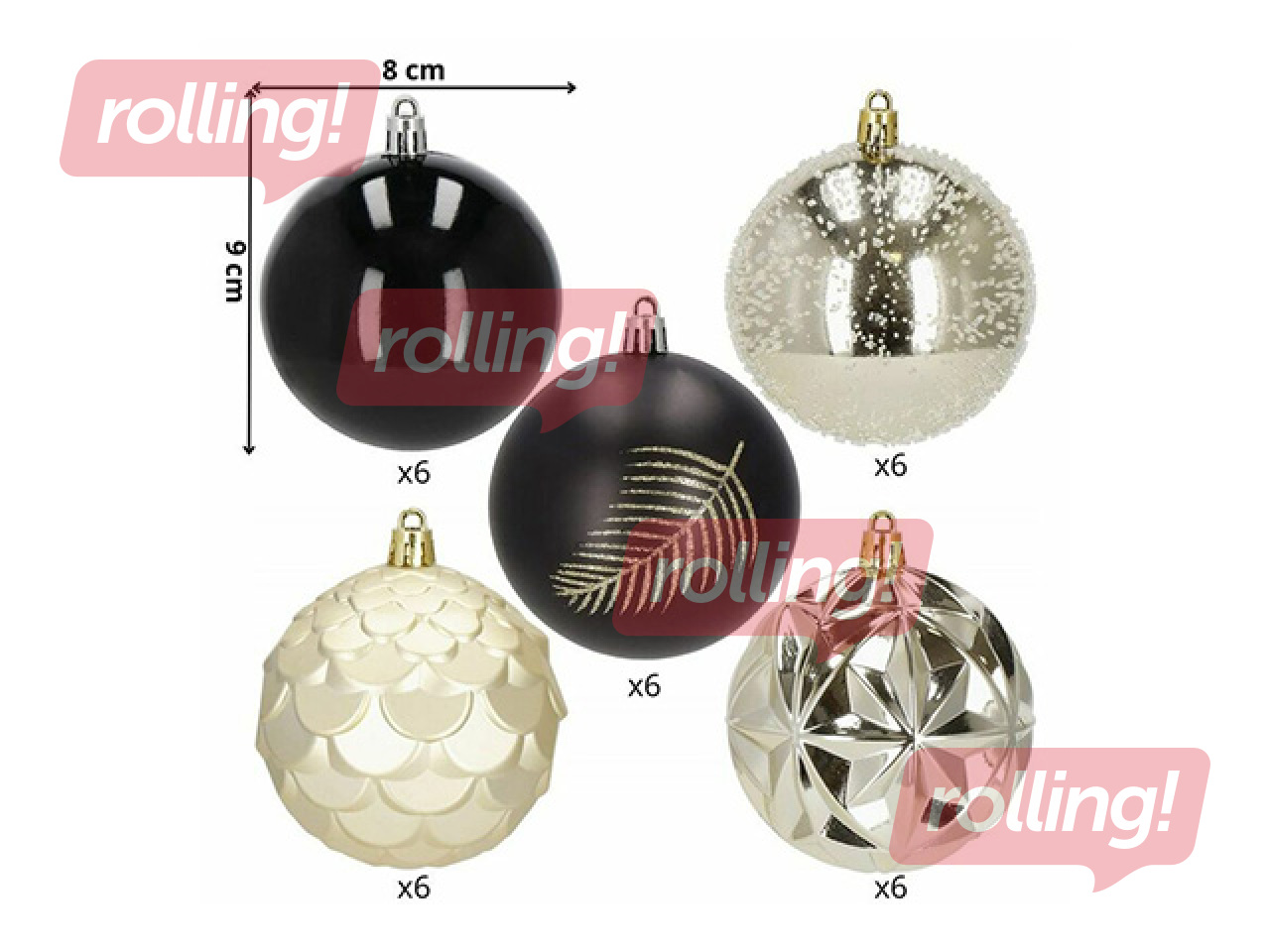 Ziemassvētku eglītes rotājumi Springos, bumbiņas, melnas un zelta, 30 gab.