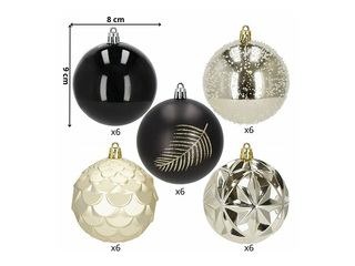 Ziemassvētku eglītes rotājumi Springos, bumbiņas, melnas un zelta, 30 gab. Salīdzināt