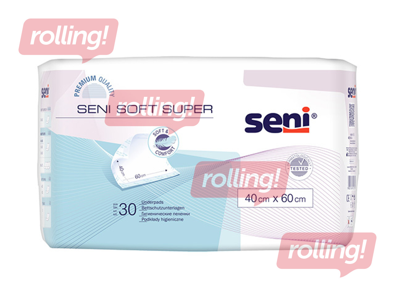 Absorbējošie paladziņi Seni Soft Super, vienreizlietojami, 40x60cm, 30 gab.